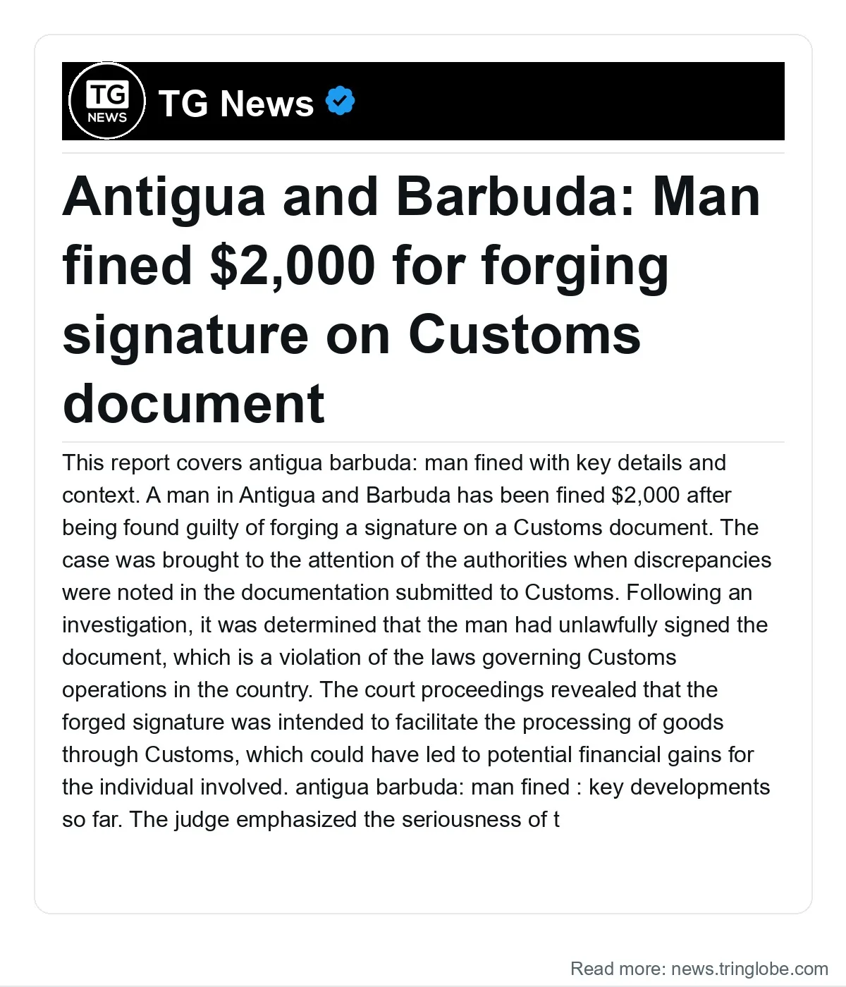 The ruling serves as a reminder to individuals and businesses about the legal consequences of forgery and the necessity of maintaining honest practices in all dealings with government agencies. The case has drawn attention to the enforcement of regulations within Customs and the ongoing efforts by authorities in Antigua and Barbuda to combat fraud and ensure compliance with the law.