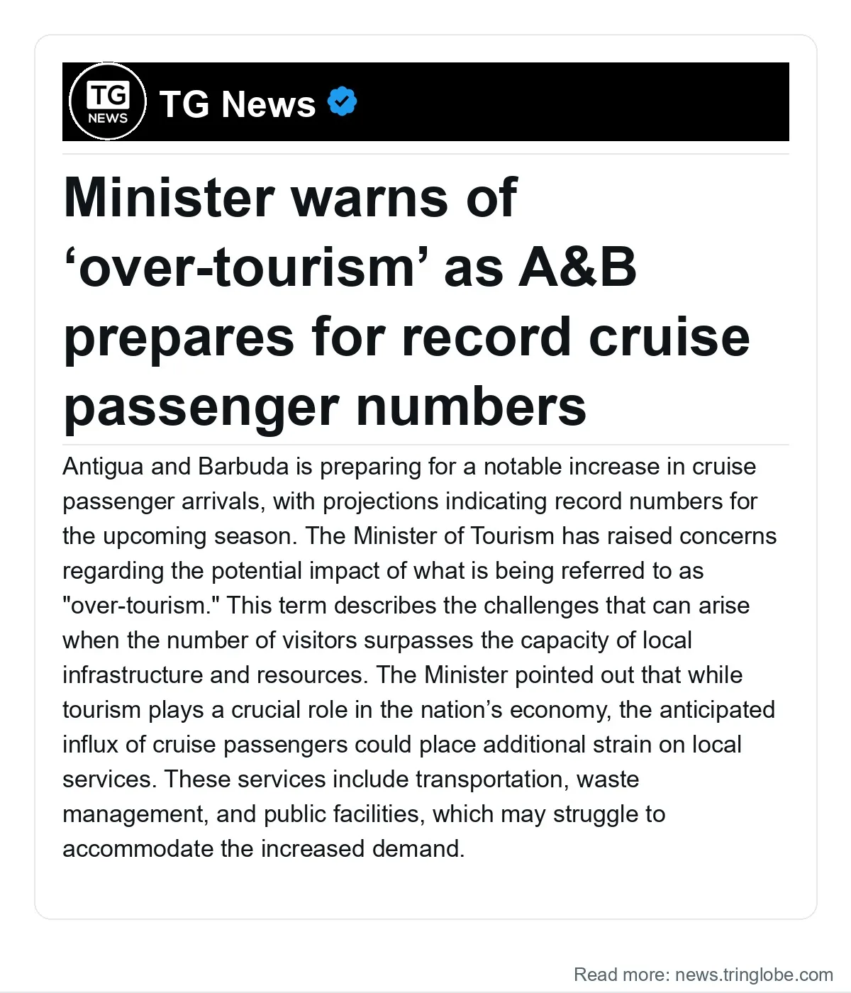 Antigua and Barbuda is preparing for a notable increase in cruise passenger arrivals, with projections indicating record numbers for the upcoming season. The Minister of Tourism has raised concerns regarding the potential impact of what is being referred to as “over-tourism.” This term describes the challenges that can arise when the number of visitors surpasses the capacity of local infrastructure and resources.