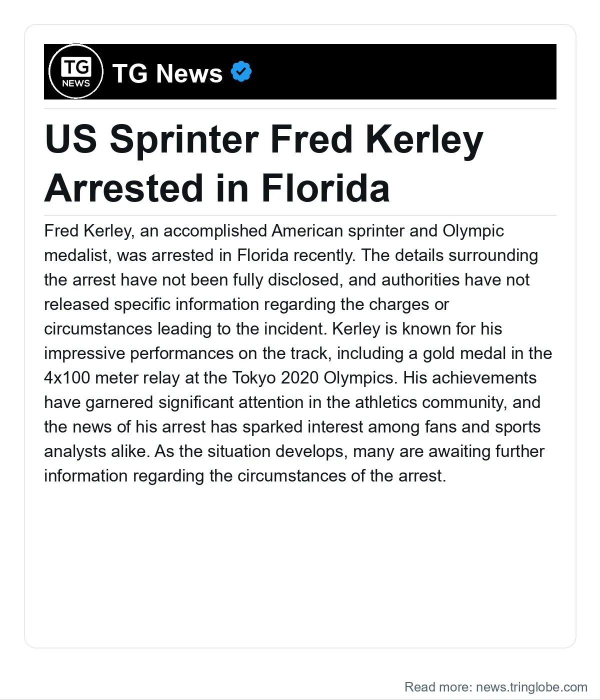 Kerley is known for his impressive performances on the track, including a gold medal in the 4×100 meter relay at the Tokyo 2020 Olympics. His achievements have garnered significant attention in the athletics community, and the news of his arrest has sparked interest among fans and sports analysts alike.