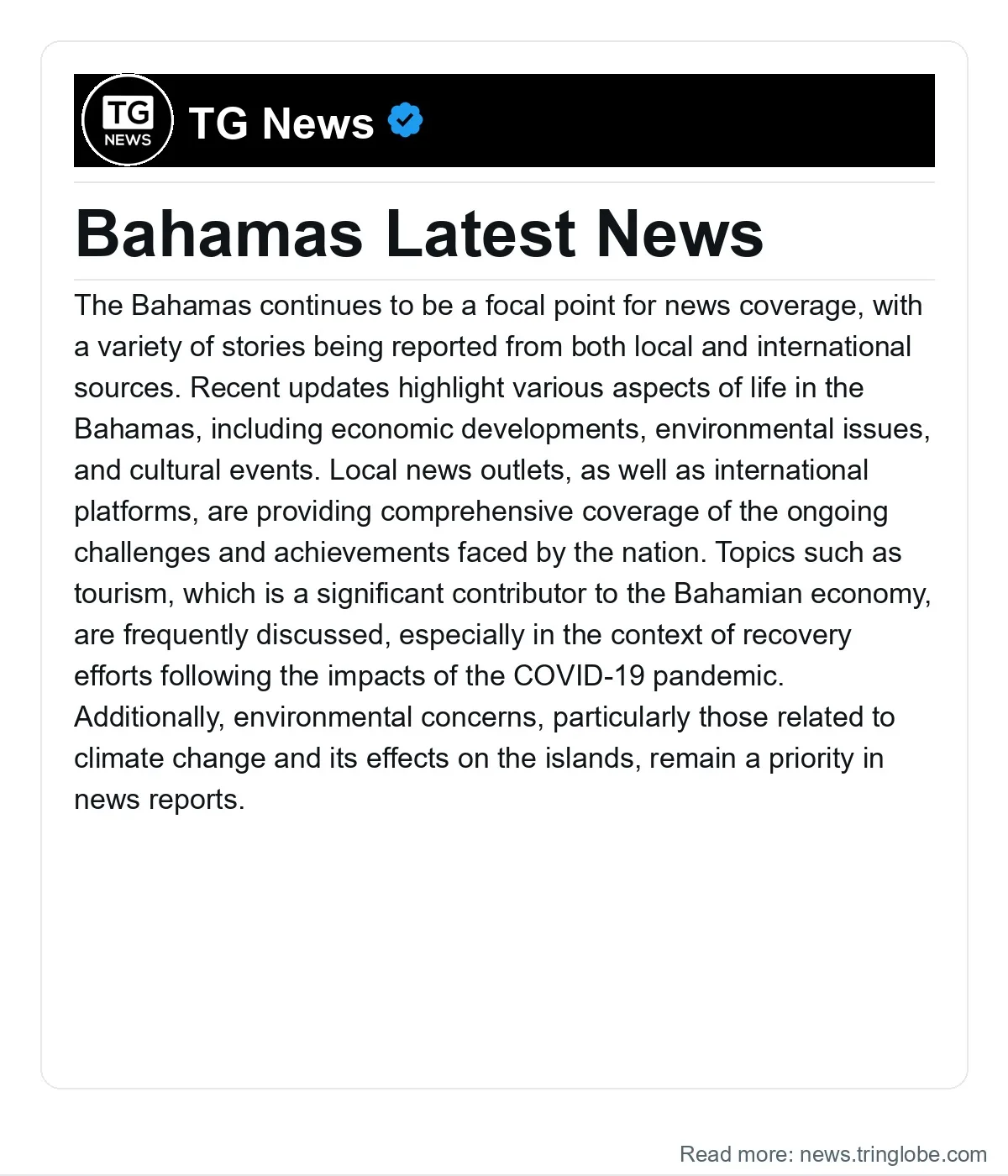 Overall, the news coverage from the Bahamas is diverse, providing insights into the ongoing developments within the country while also connecting local stories to broader global narratives. This aggregation of information serves to keep both residents and the international community informed about the latest happenings in the Bahamas.
