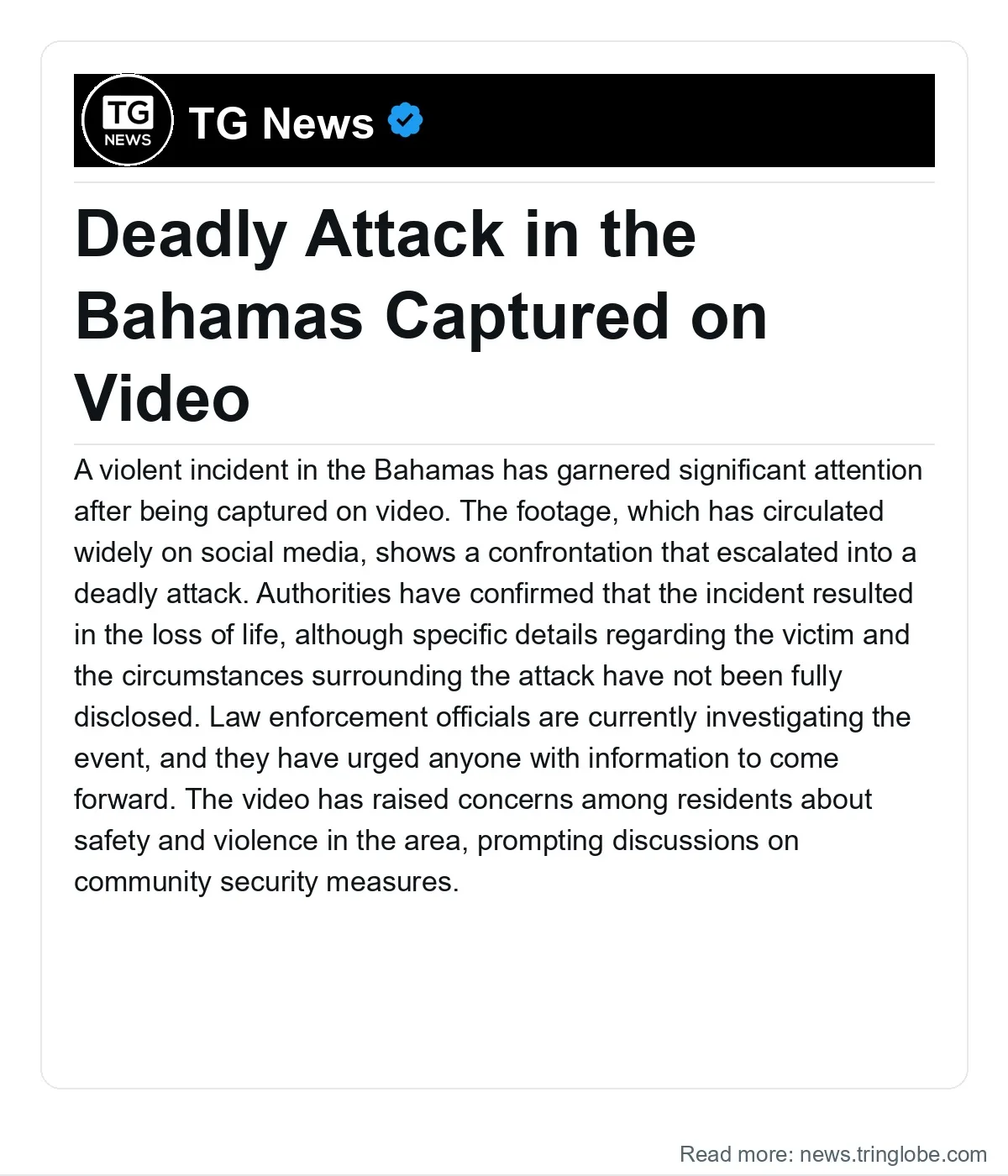 In conclusion, the deadly attack captured on video has sparked a renewed focus on safety and security in the Bahamas. As the investigation progresses, the community remains hopeful for answers and for measures that will help prevent future violence.