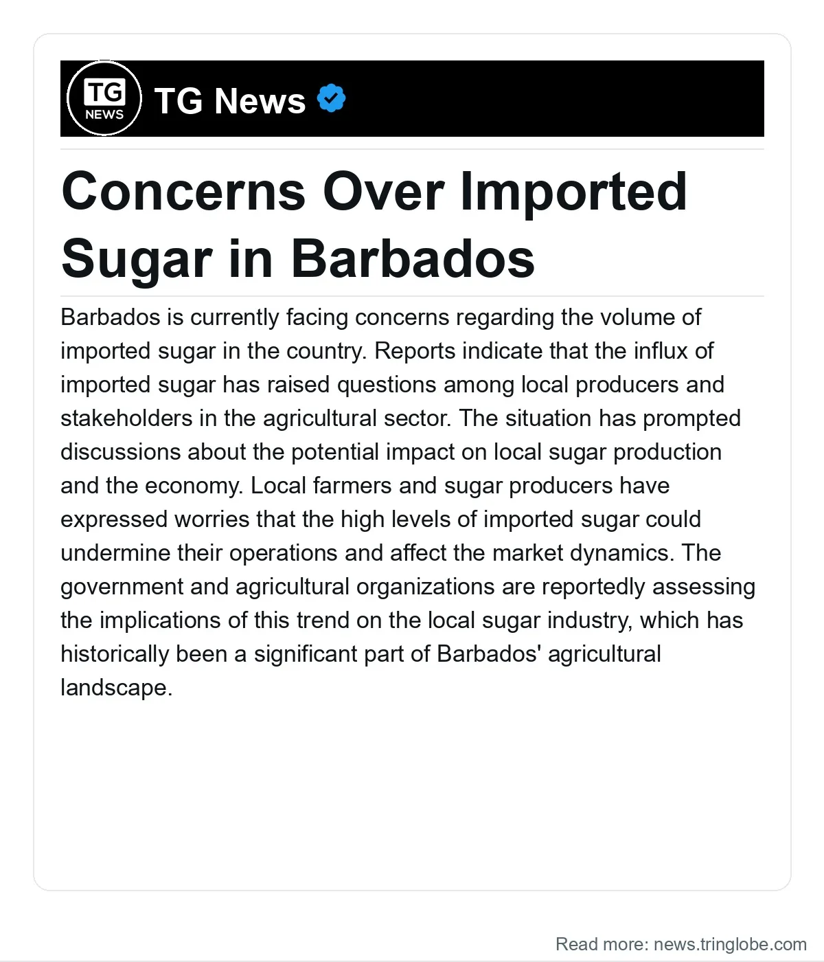 Local farmers and sugar producers have expressed worries that the high levels of imported sugar could undermine their operations and affect the market dynamics. The government and agricultural organizations are reportedly assessing the implications of this trend on the local sugar industry, which has historically been a significant part of Barbados’ agricultural landscape.