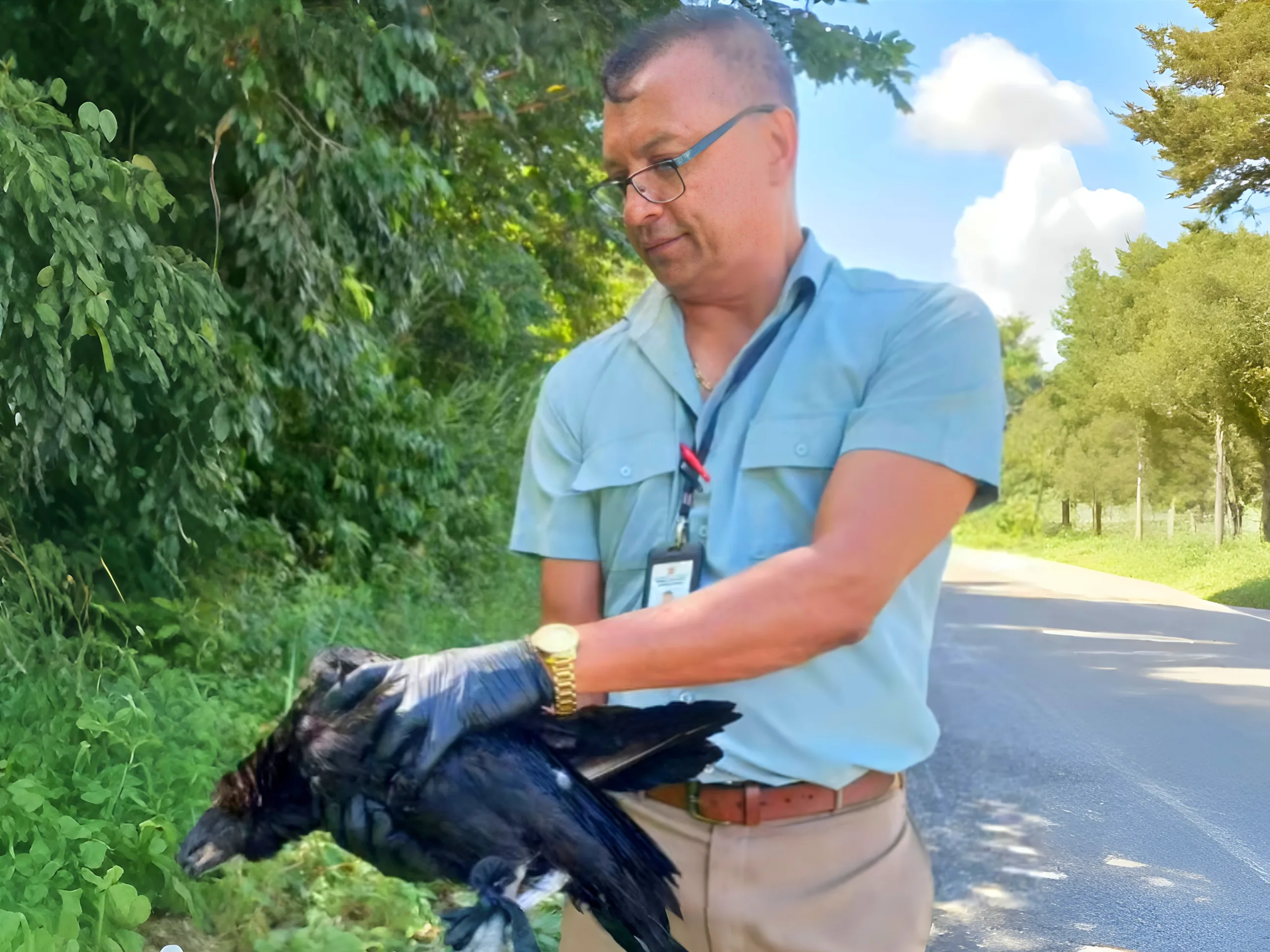A black vulture found motionless on the roadside in Wallerfield was saved after being spotted by Zonobia Mohammed. Concerned about the bird’s immobility over two days, she alerted the Hunters Search and Rescue Team. Game Warden Steve Seepersad answered the call, assessing the bird before transporting it to a vet for a full check-up. Although uninjured, the bird’s condition warranted concern. Officials expressed gratitude to Zonobia for her vigilance and to Seepersad for his swift, professional action.