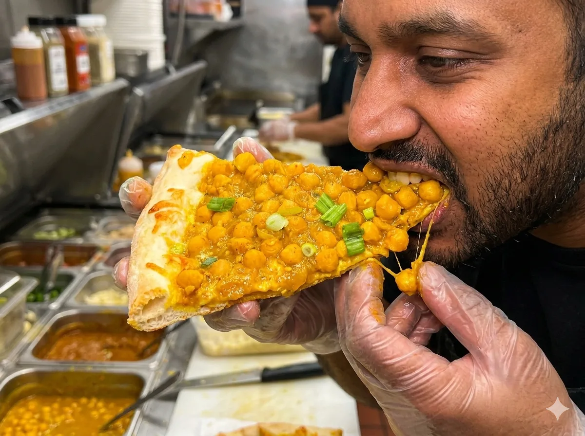 The creation, shared by a New York based kitchen page, shows curry channa layered over a slice of pizza, blending Indian Caribbean flavors with a classic Italian staple. While some praised the idea as creative and exciting, others were quick to push back, saying the concept goes too far.