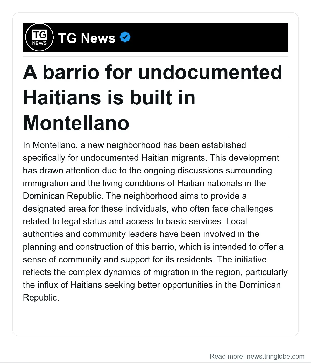 In Montellano, a new neighborhood has been established specifically for undocumented Haitian migrants. This development has drawn attention due to the ongoing discussions surrounding immigration and the living conditions of Haitian nationals in the Dominican Republic. The neighborhood aims to provide a designated area for these individuals, who often face challenges related to legal status and access to basic services.
