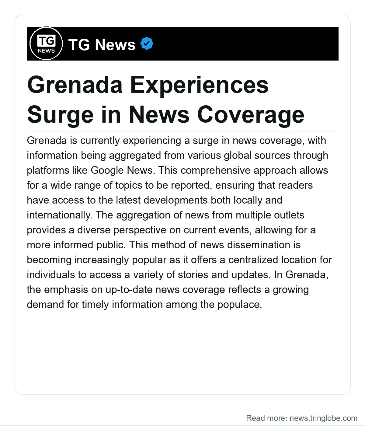 Grenada is currently experiencing a surge in news coverage, with information being aggregated from various global sources through platforms like Google News. This comprehensive approach allows for a wide range of topics to be reported, ensuring that readers have access to the latest developments both locally and internationally.