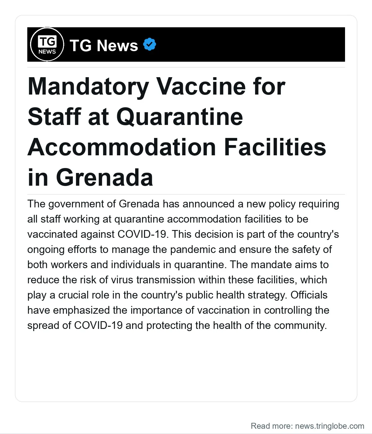 As Grenada navigates the challenges posed by COVID-19, the government remains committed to implementing measures that prioritize public health and safety. The vaccination requirement for quarantine facility staff is one of several steps being taken to mitigate the impact of the virus in the country.