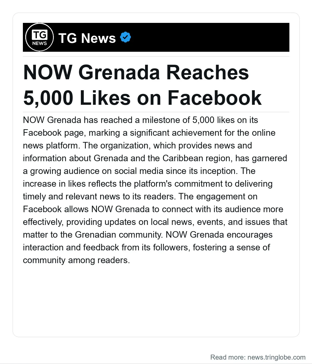 NOW Grenada has reached a milestone of 5,000 likes on its Facebook page, marking a significant achievement for the online news platform. The organization, which provides news and information about Grenada and the Caribbean region, has garnered a growing audience on social media since its inception.