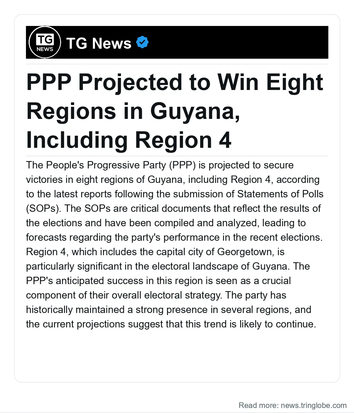 This report covers guyana: ppp projected win with key details and context.