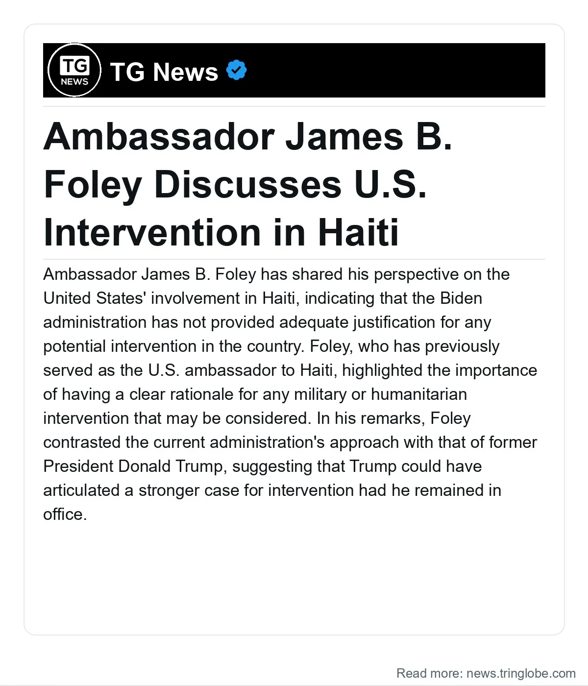 In conclusion, Ambassador Foley’s comments underscore the ongoing debate about U.S. involvement in Haiti and the broader implications of foreign intervention in crisis situations. The need for a clear rationale and a thoughtful approach to any potential actions is essential as the situation in Haiti continues to develop.