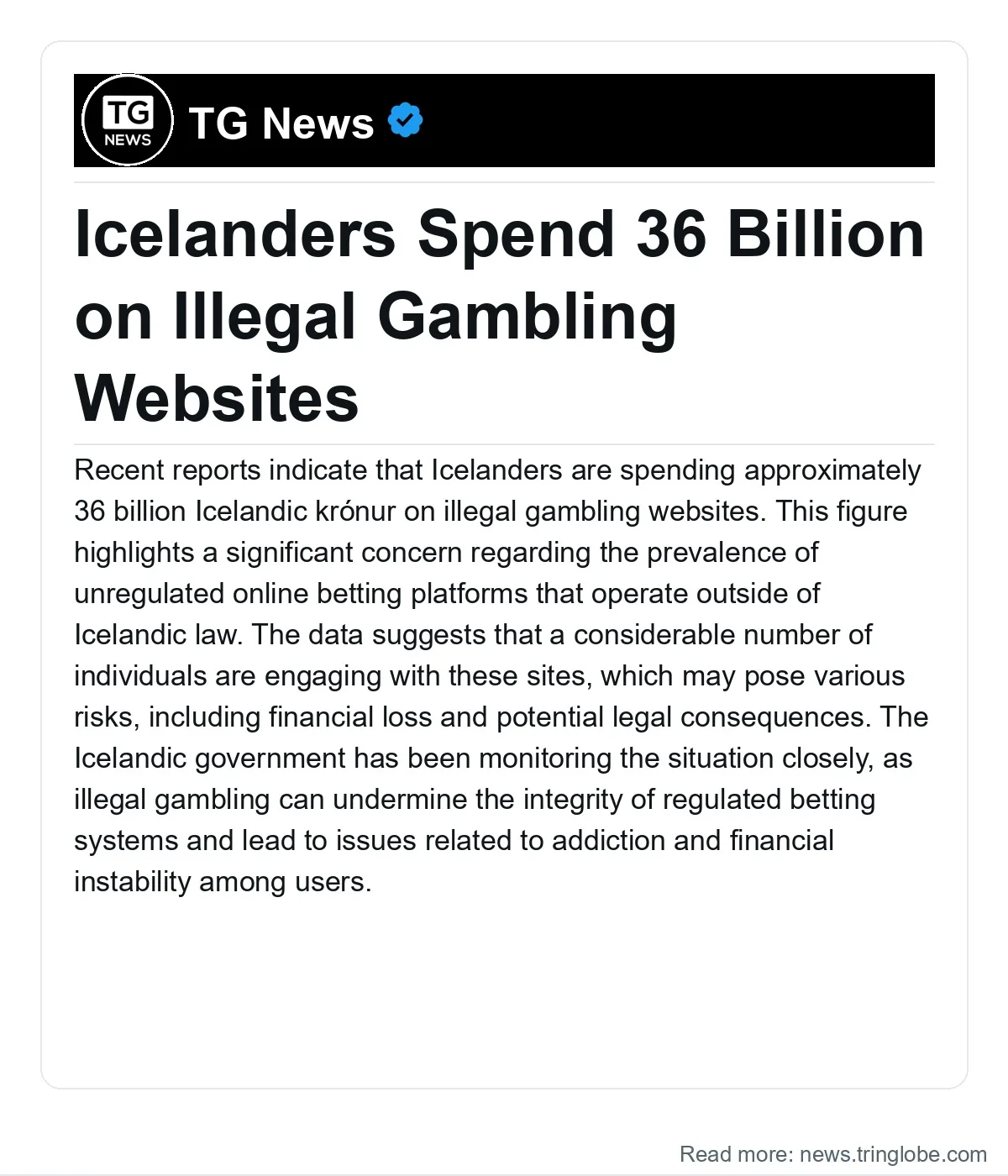 Recent reports indicate that Icelanders are spending approximately 36 billion Icelandic krónur on illegal gambling websites. This figure highlights a significant concern regarding the prevalence of unregulated online betting platforms that operate outside of Icelandic law.