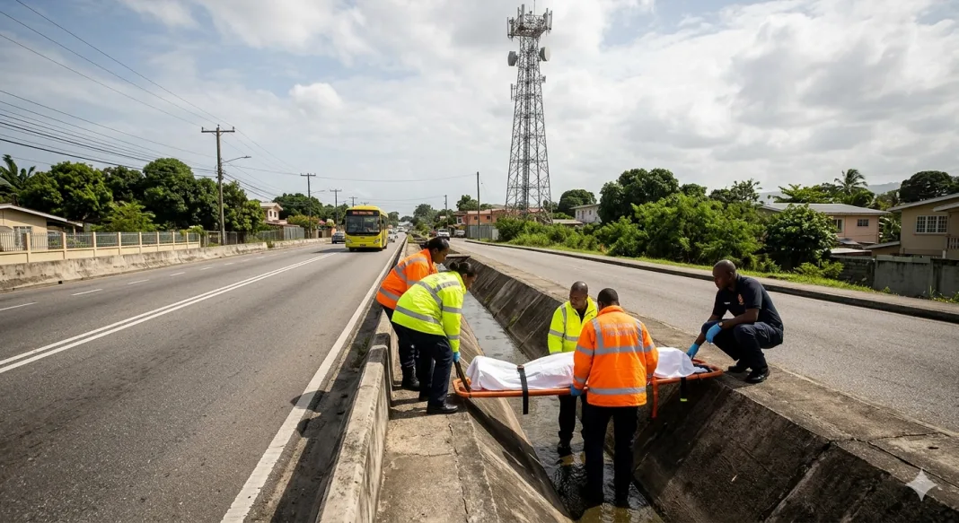 Local authorities in Arouca are currently investigating a grim discovery made early Monday afternoon. A man’s body was found in a concrete drain along the Priority Bus Route, near the TSTT tower. The deceased is described as being of mixed descent, approximately 5 feet tall, with a beard and short, greying hair. He was found wearing a red and black jersey paired with grey shorts.