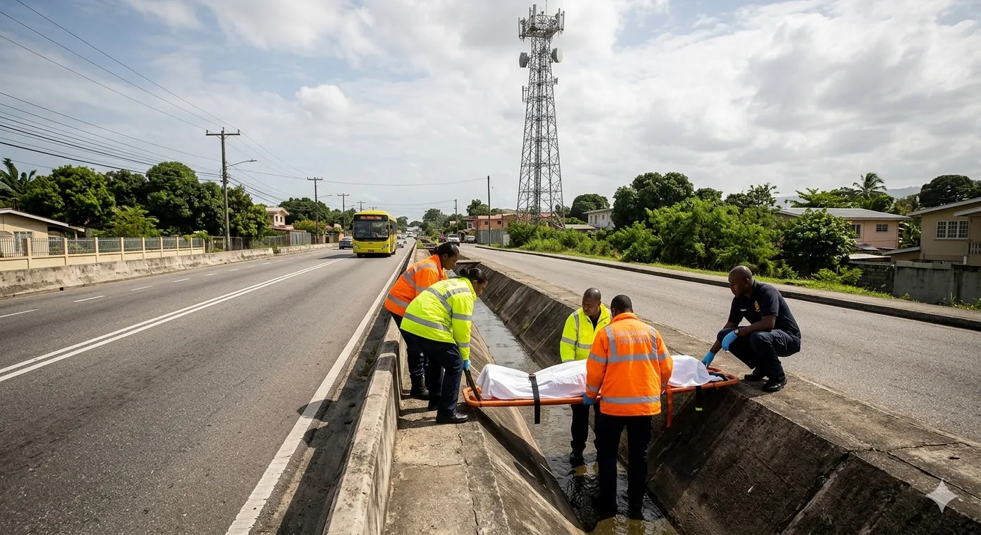 Local authorities in Arouca are currently investigating a grim discovery made early Monday afternoon. A man’s body was found in a concrete drain along the Priority Bus Route, near the TSTT tower. The deceased is described as being of mixed descent, approximately 5 feet tall, with a beard and short, greying hair. He was found wearing a red and black jersey paired with grey shorts.