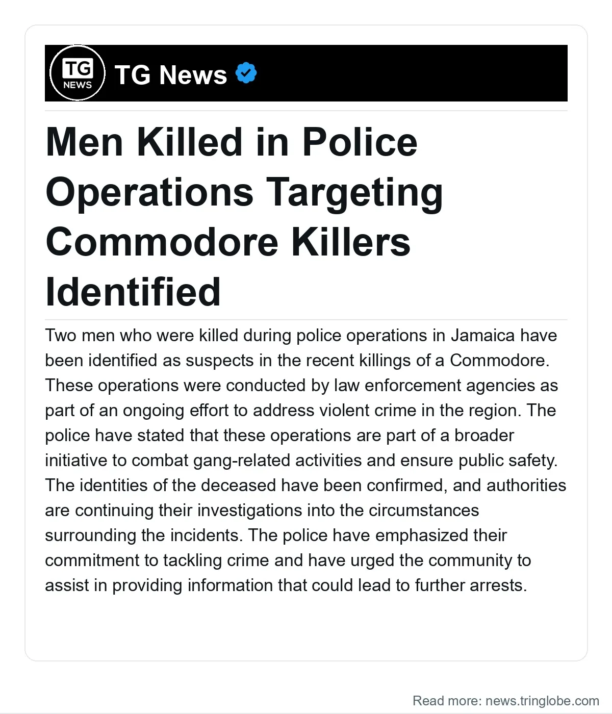 Two men who were killed during police operations in Jamaica have been identified as suspects in the recent killings of a Commodore. These operations were conducted by law enforcement agencies as part of an ongoing effort to address violent crime in the region.
