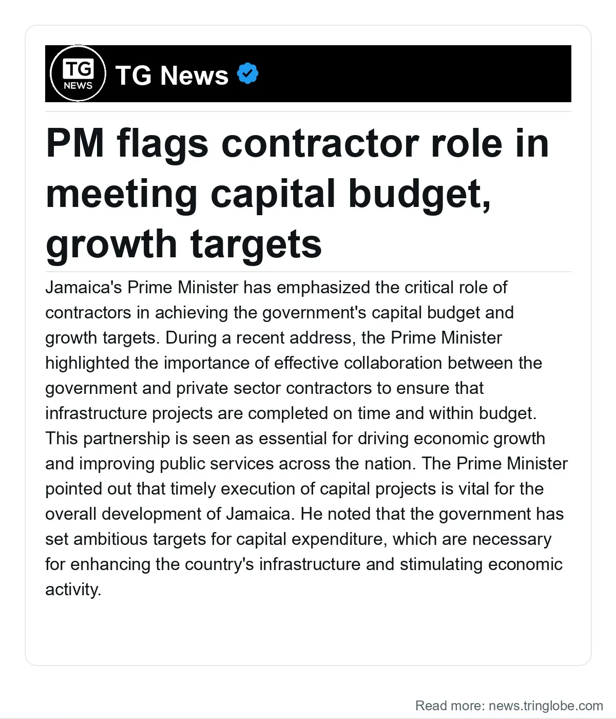 Jamaica’s Prime Minister has emphasized the critical role of contractors in achieving the government’s capital budget and growth targets. During a recent address, the Prime Minister highlighted the importance of effective collaboration between the government and private sector contractors to ensure that infrastructure projects are completed on time and within budget.