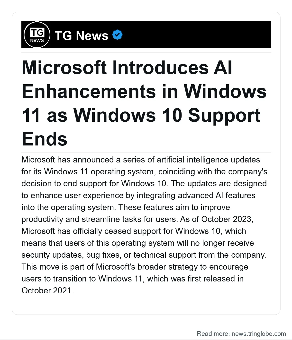 In summary, Microsoft’s introduction of AI updates in Windows 11 aligns with its strategy to phase out Windows 10 support. Users are encouraged to upgrade to take advantage of the latest features and ensure their systems remain secure and efficient.