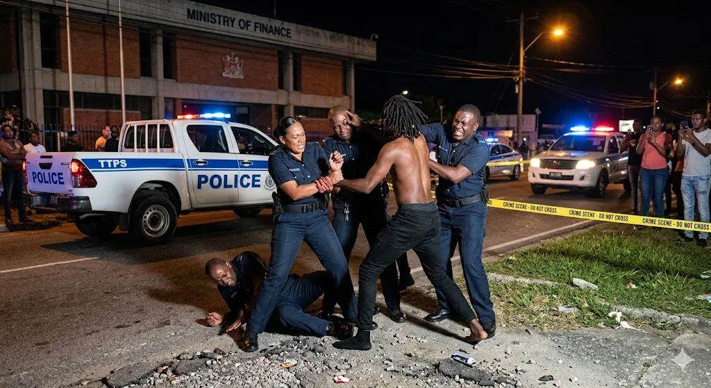 A 23-year-old mortician from Petit Valley, Kareem Charles, has been arrested following a violent clash with police during a patrol in Arouca late Friday night. The confrontation occurred around 11:55 p.m. on April 10, 2026, along the Eastern Main Road near the Ministry of Finance building.