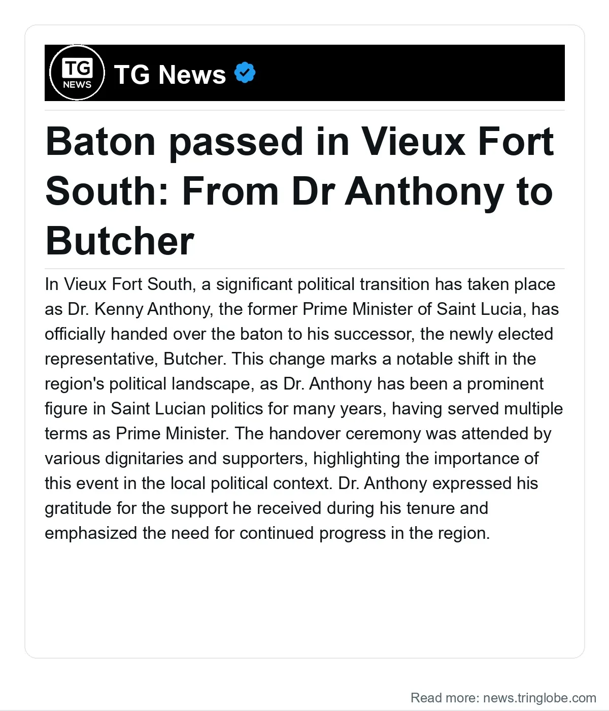 In conclusion, the handover from Dr. Anthony to Butcher represents a pivotal moment in Vieux Fort South’s political journey. It underscores the importance of democratic processes and the role of elected officials in shaping the future of their communities. As the new representative takes on his responsibilities, the community looks forward to engaging with him and contributing to the ongoing development of the region.