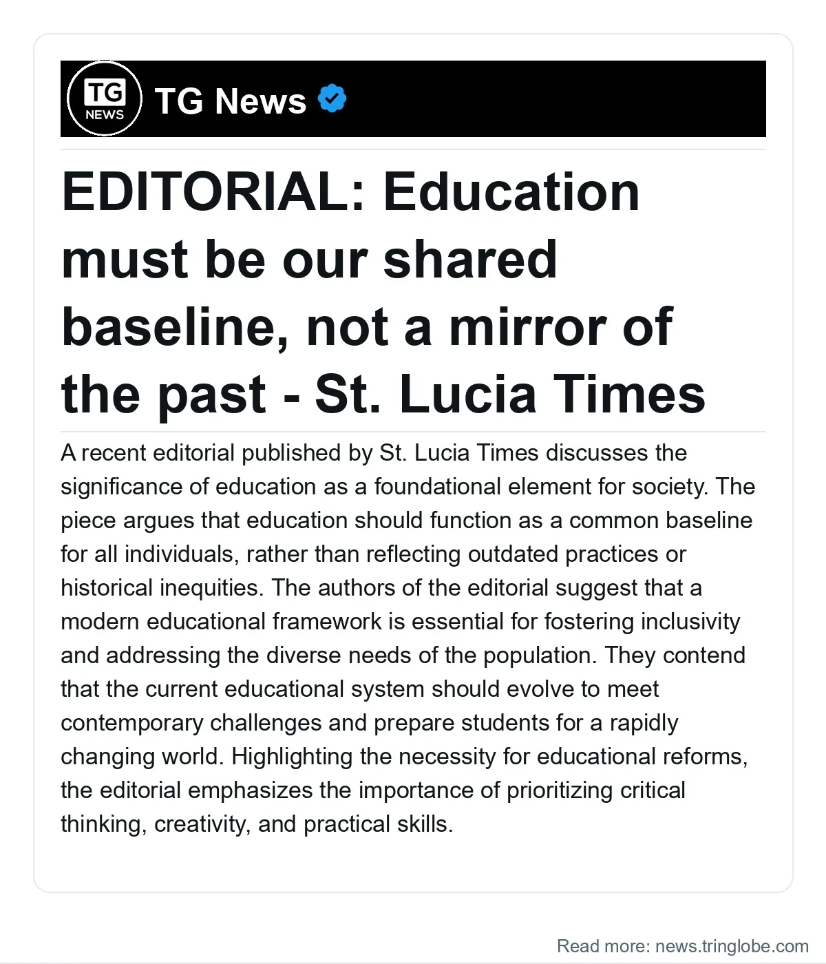 A recent editorial published by St. Lucia Times discusses the significance of education as a foundational element for society. The piece argues that education should function as a common baseline for all individuals, rather than reflecting outdated practices or historical inequities.