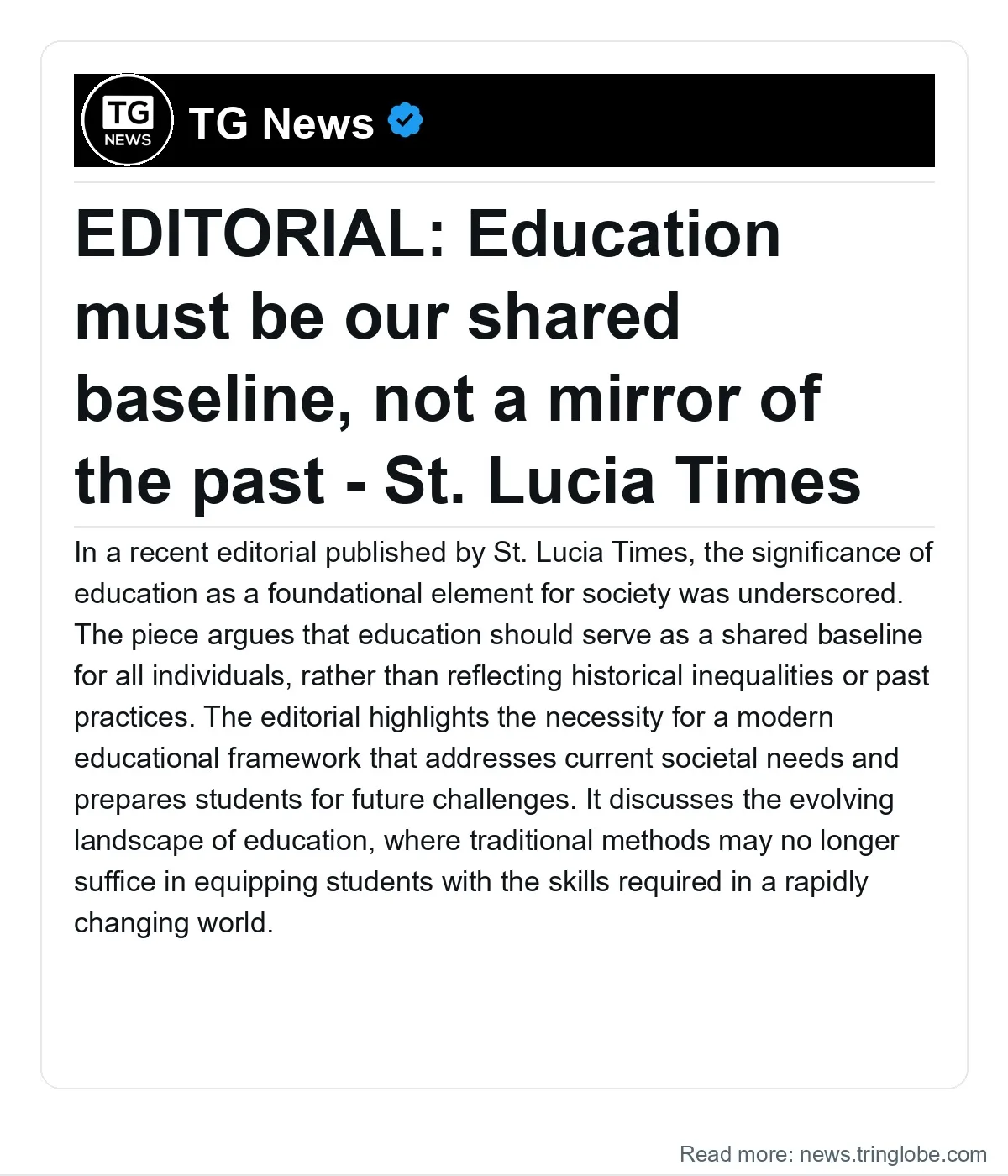 In a recent editorial published by St. Lucia Times, the significance of education as a foundational element for society was underscored. The piece argues that education should serve as a shared baseline for all individuals, rather than reflecting historical inequalities or past practices.