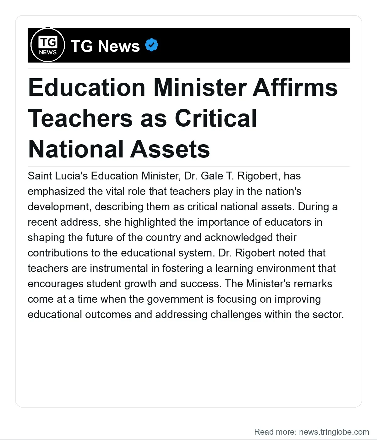 Saint Lucia’s Education Minister, Dr. Gale T. Rigobert, has emphasized the vital role that teachers play in the nation’s development, describing them as critical national assets. During a recent address, she highlighted the importance of educators in shaping the future of the country and acknowledged their contributions to the educational system.