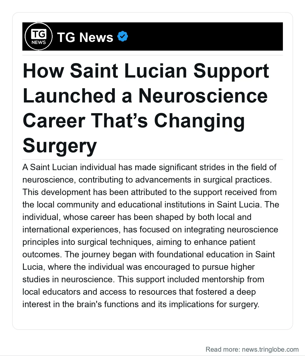 A Saint Lucian individual has made significant strides in the field of neuroscience, contributing to advancements in surgical practices. This development has been attributed to the support received from the local community and educational institutions in Saint Lucia.