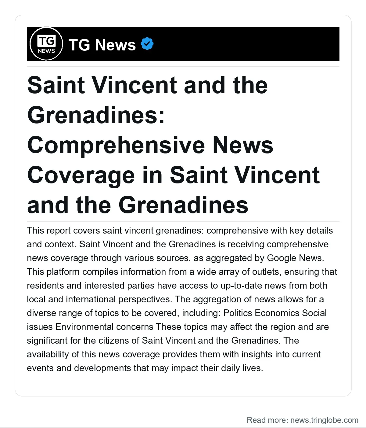 Residents can benefit from this aggregation by accessing a wide range of viewpoints and analyses, which can contribute to more informed discussions and decision-making within the community. As the world continues to evolve, the importance of reliable news coverage remains paramount for the citizens of Saint Vincent and the Grenadines.