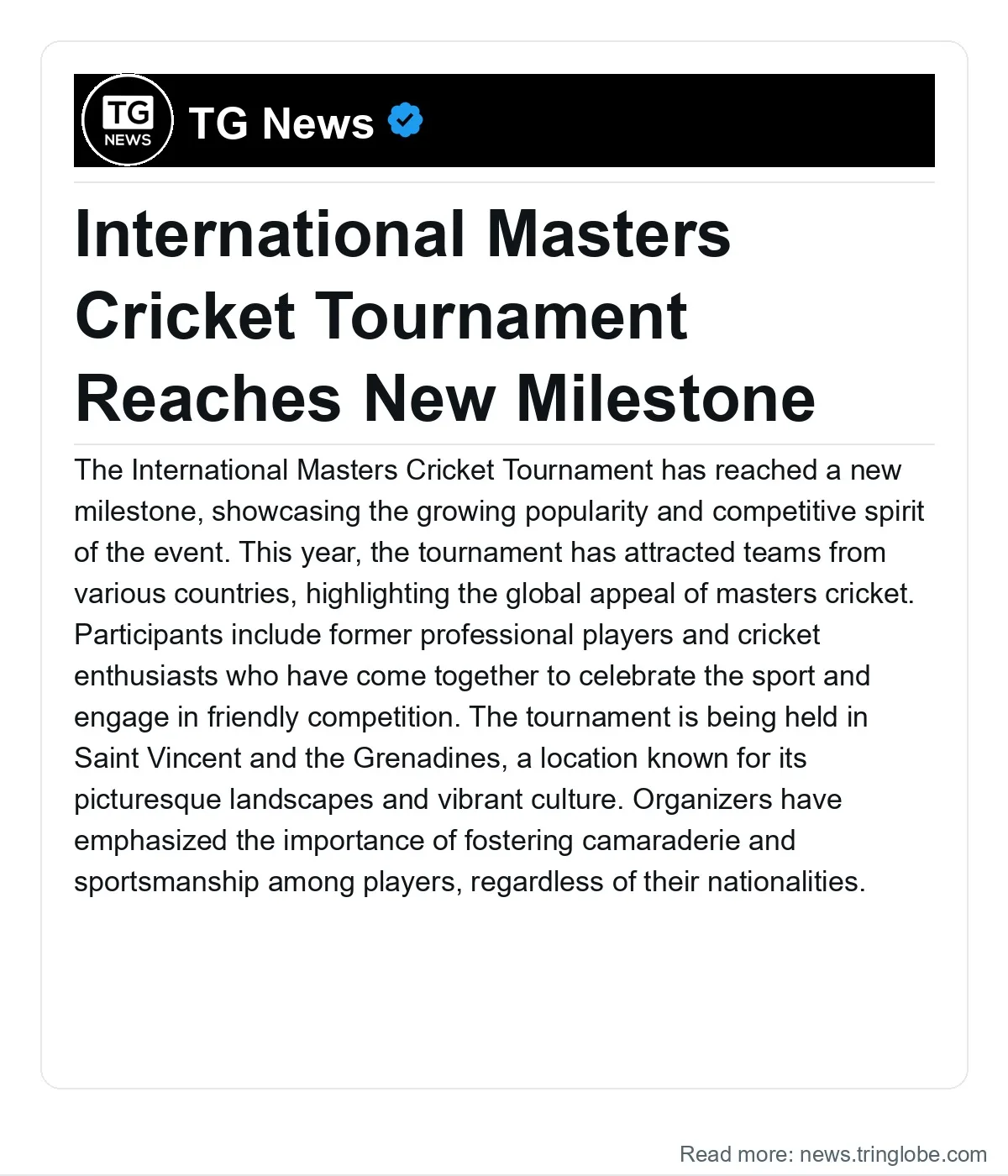 The tournament is being held in Saint Vincent and the Grenadines, a location known for its picturesque landscapes and vibrant culture. Organizers have emphasized the importance of fostering camaraderie and sportsmanship among players, regardless of their nationalities. The event not only provides an opportunity for athletes to display their skills but also aims to promote cricket as a sport that transcends age and borders.