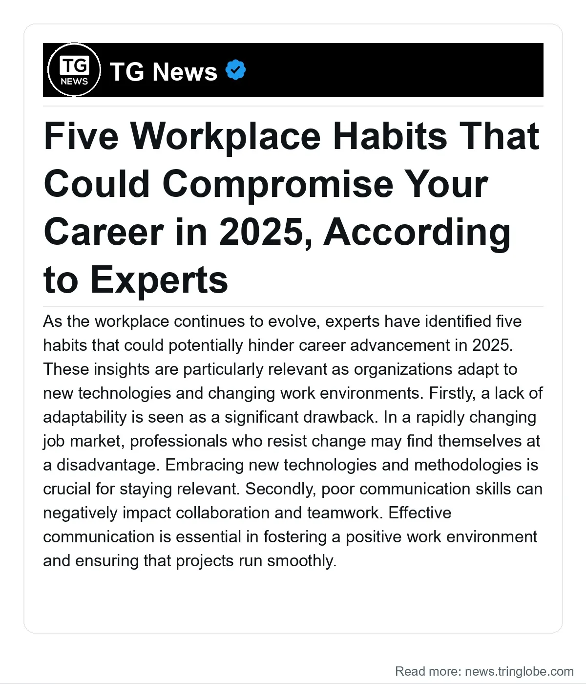 Professionals are encouraged to reflect on these habits and consider how they might impact their career trajectories in the coming years. As the job market continues to evolve, staying proactive in personal and professional development will be essential for success.