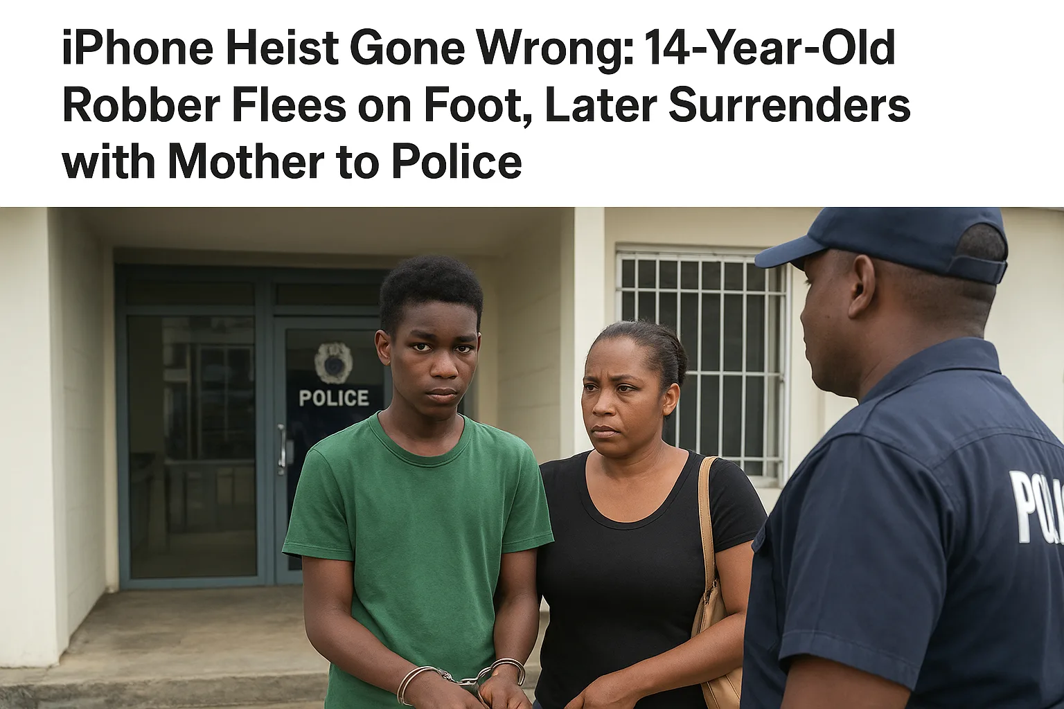 A 14-year-old boy, who allegedly robbed a woman of her iPhone 13 at cutlass-point in South Oropouche, is currently in police custody. The incident happened on Saturday night when the woman was walking along Government School Trace. The boy, described as a slim-built teenager of African descent, threatened the woman with a cutlass and ran off with her phone, valued at $2,800. Later, the boy, accompanied by his mother, surrendered to the Oropouche Police Station. He was properly cautioned, informed of his rights, and detained at the Oropouche Booking Centre. The Children’s Authority and Duty Counsel were notified, and a lawyer is now representing the minor. Investigations are ongoing.