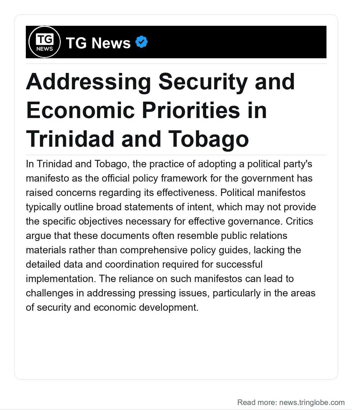 In Trinidad and Tobago, the practice of adopting a political party’s manifesto as the official policy framework for the government has raised concerns regarding its effectiveness. Political manifestos typically outline broad statements of intent, which may not provide the specific objectives necessary for effective governance. Critics argue that these documents often resemble public relations materials rather than comprehensive policy guides, lacking the detailed data and coordination required for successful implementation.