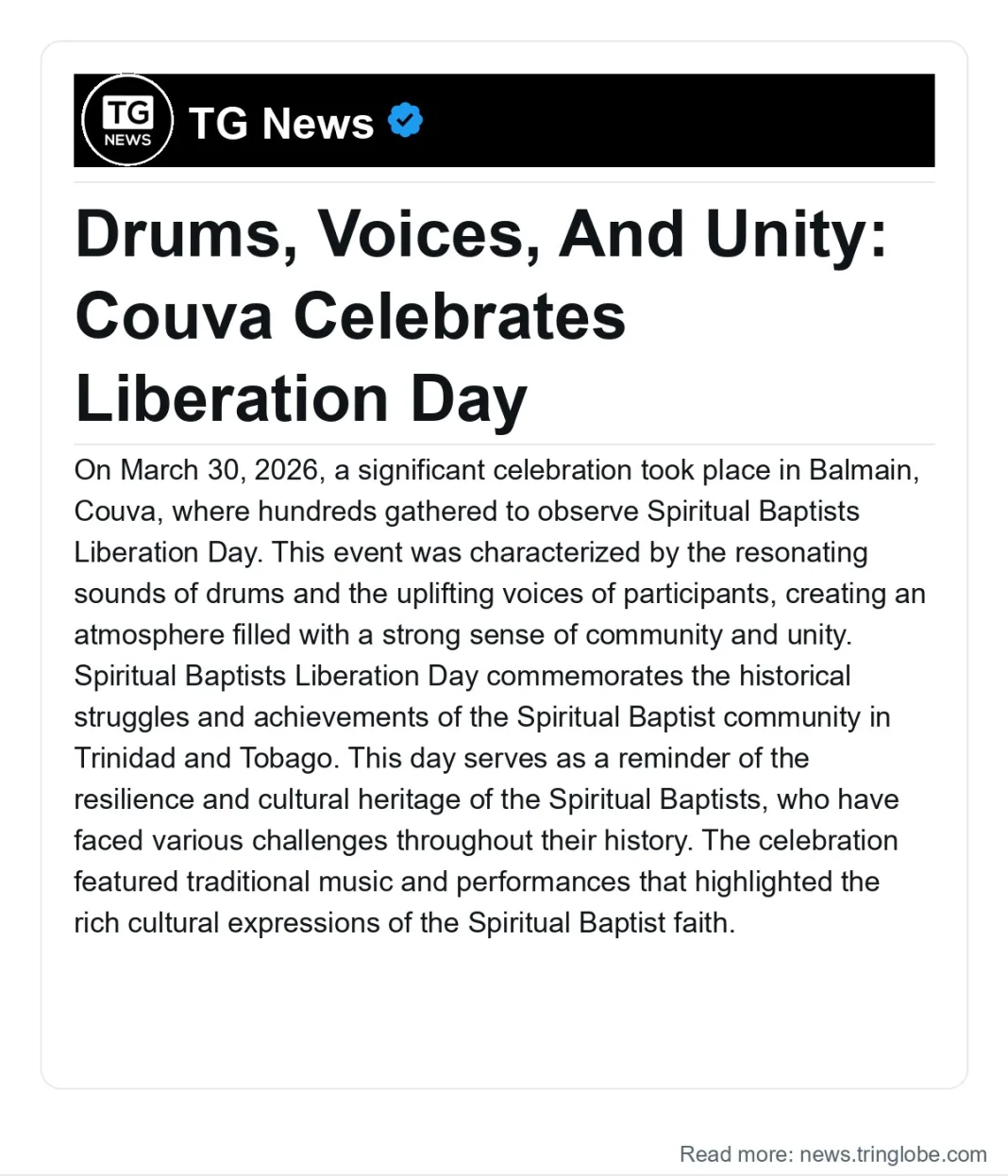 On March 30, 2026, a significant celebration took place in Balmain, Couva, where hundreds gathered to observe Spiritual Baptists Liberation Day. This event was characterized by the resonating sounds of drums and the uplifting voices of participants, creating an atmosphere filled with a strong sense of community and unity.