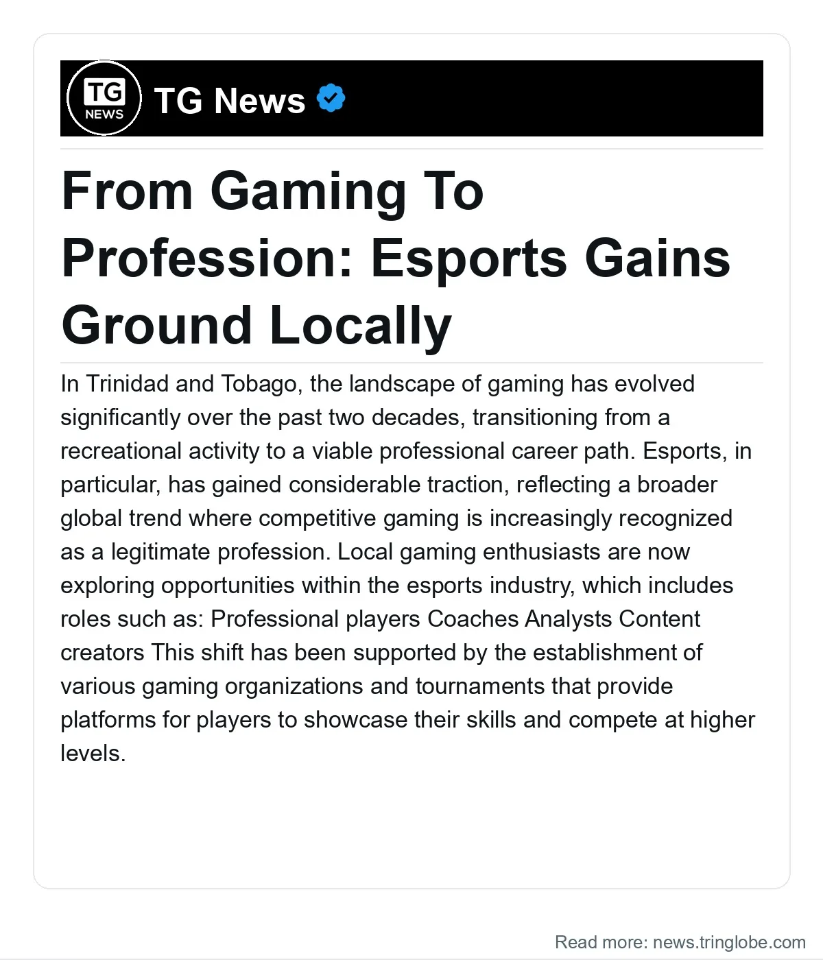 In Trinidad and Tobago, the landscape of gaming has evolved significantly over the past two decades, transitioning from a recreational activity to a viable professional career path. Esports, in particular, has gained considerable traction, reflecting a broader global trend where competitive gaming is increasingly recognized as a legitimate profession.
