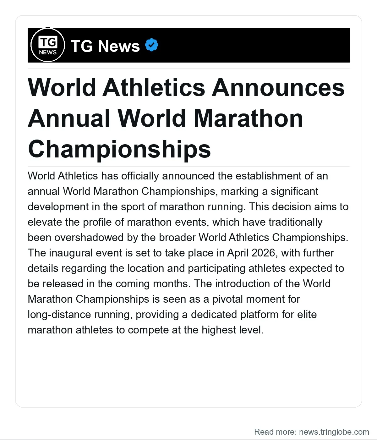 As the date approaches, many in the athletics community are eager to see how this new championship will unfold and what it will mean for the future of marathon running. The excitement surrounding the event reflects a growing interest in long-distance running, which has seen a surge in participation and viewership in recent years.