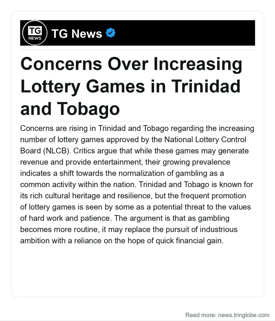 Concerns are rising in Trinidad and Tobago regarding the increasing number of lottery games approved by the National Lottery Control Board (NLCB). Critics argue that while these games may generate revenue and provide entertainment, their growing prevalence indicates a shift towards the normalization of gambling as a common activity within the nation.