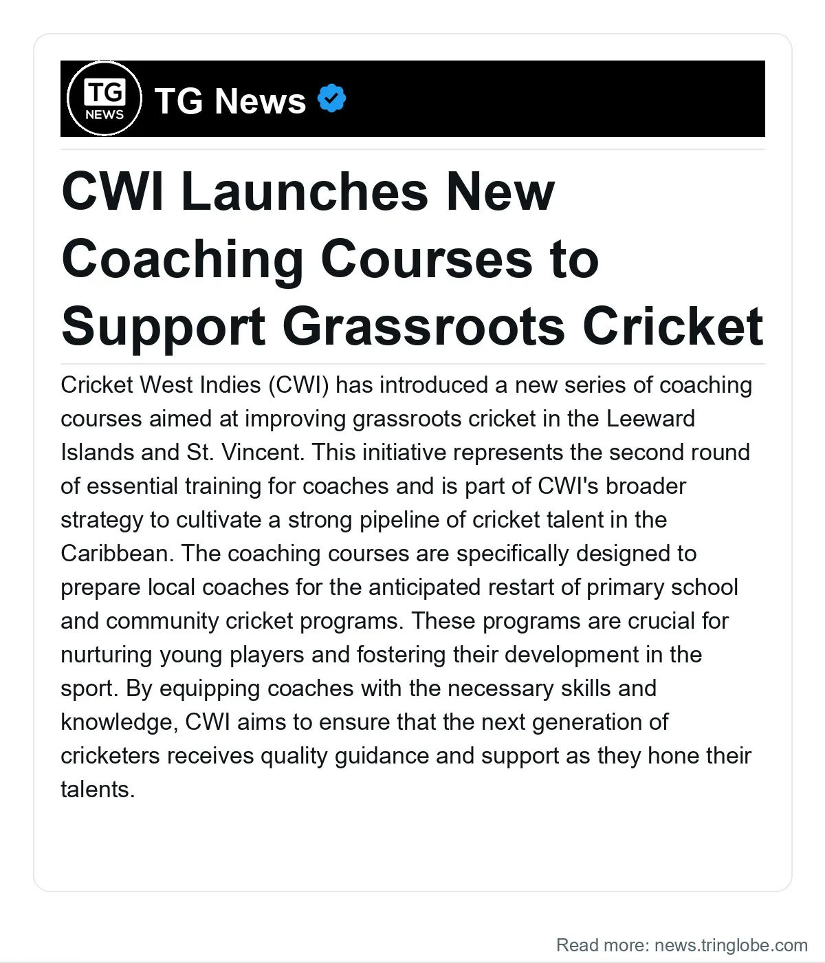 This initiative underscores CWI’s commitment to strengthening the foundation of cricket in the region. The organization recognizes the significance of grassroots programs in identifying and developing future stars of the sport. The training sessions will cover various aspects of coaching, including techniques, strategies, and player development, ensuring that coaches are well-prepared to lead and inspire young athletes.