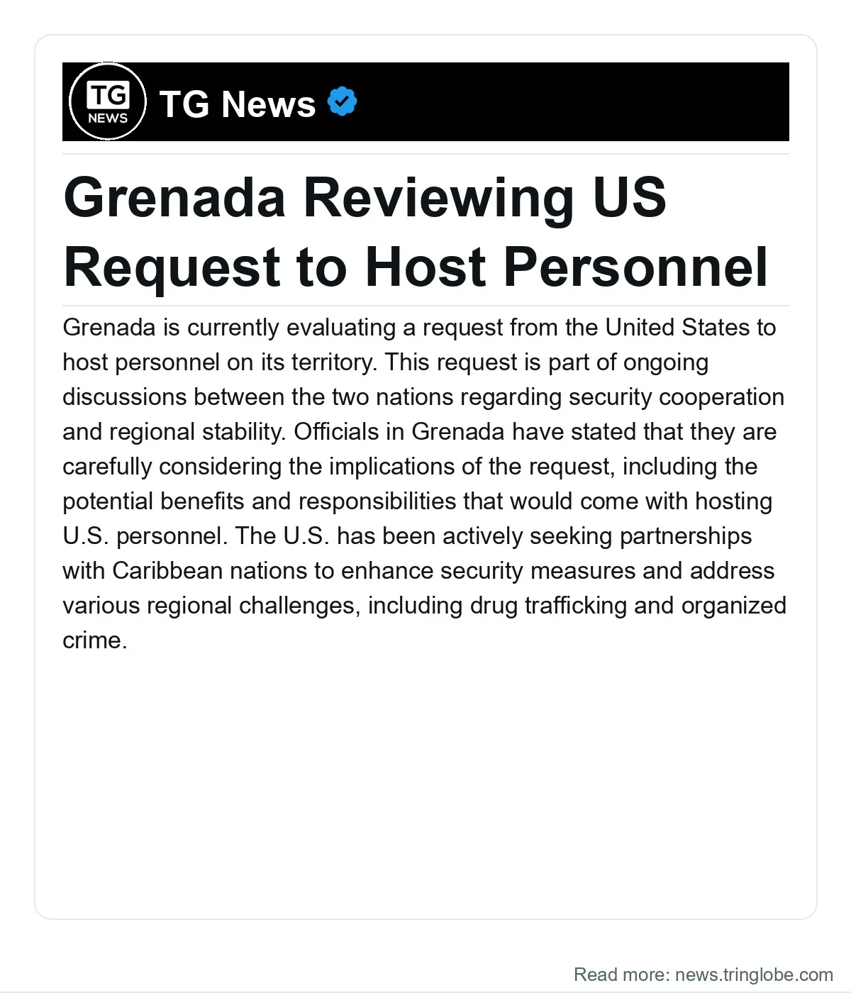 The outcome of this review will determine whether Grenada will agree to the U.S. request and what form that cooperation might take. As discussions continue, both governments are expected to maintain open lines of communication to ensure that any agreement aligns with Grenada’s national interests and security priorities.
