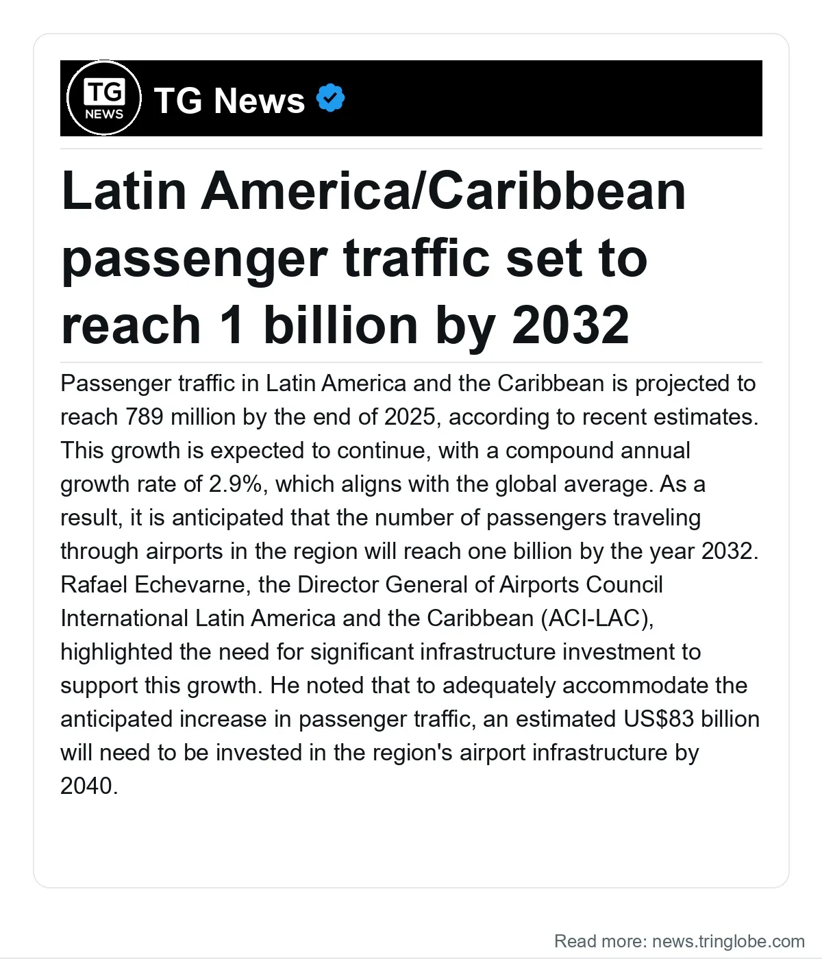 Rafael Echevarne, the Director General of Airports Council International Latin America and the Caribbean (ACI-LAC), highlighted the need for significant infrastructure investment to support this growth. He noted that to adequately accommodate the anticipated increase in passenger traffic, an estimated US$83 billion will need to be invested in the region’s airport infrastructure by 2040. This investment is deemed crucial to ensure that airports can handle the expected surge in travelers and maintain efficient operations.