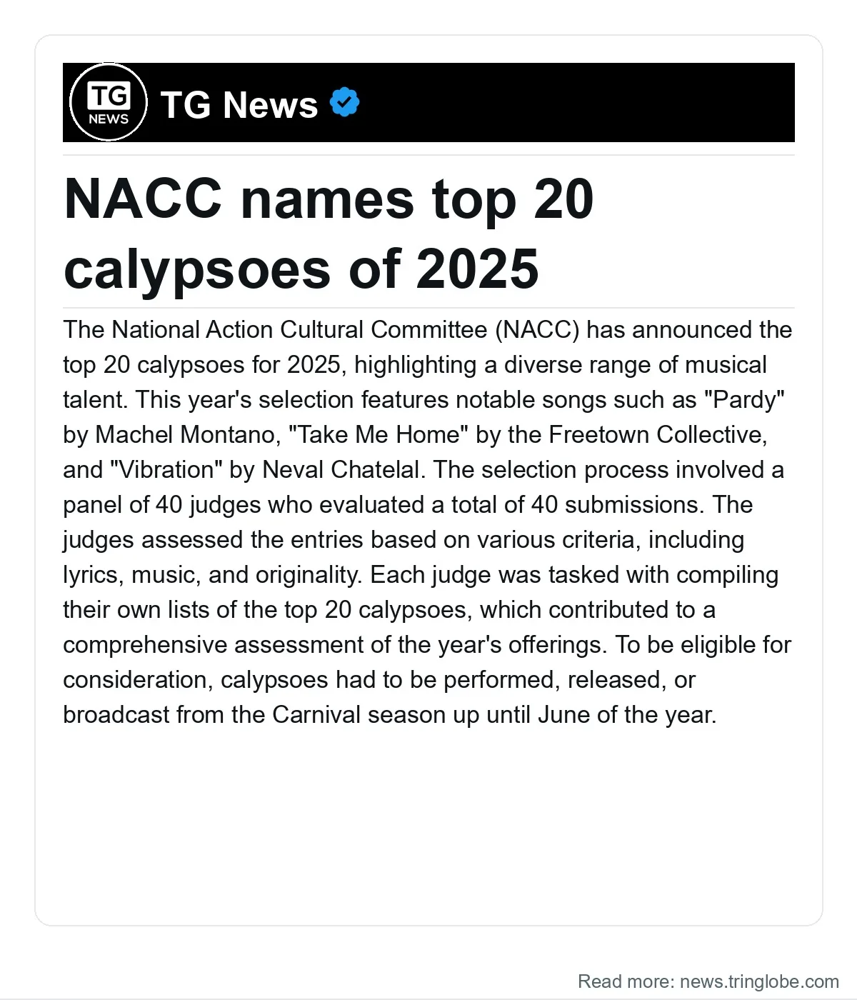 Overall, the NACC’s announcement of the top 20 calypsoes for 2025 not only highlights the musical diversity present in Trinidad and Tobago but also reinforces the importance of calypso as a vital expression of the nation’s cultural identity. The upcoming awards ceremony promises to be a significant event for both artists and fans, celebrating the enduring legacy of calypso music.
