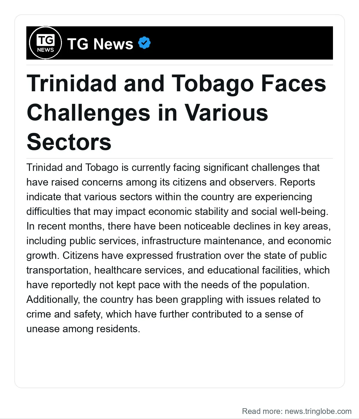 Trinidad and Tobago is currently facing significant challenges that have raised concerns among its citizens and observers. Reports indicate that various sectors within the country are experiencing difficulties that may impact economic stability and social well-being.