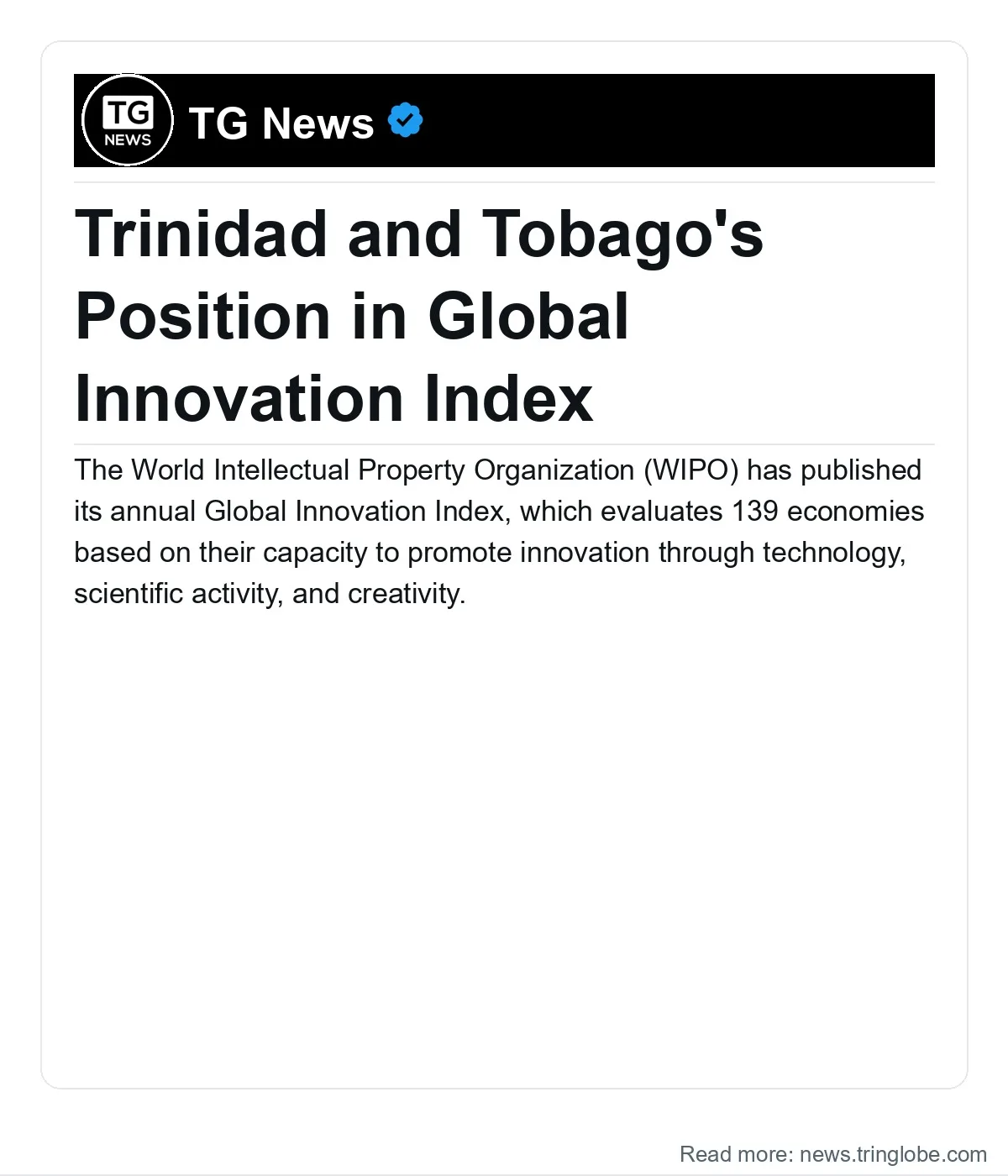 The World Intellectual Property Organization (WIPO) has published its annual Global Innovation Index, which evaluates 139 economies based on their capacity to promote innovation through technology, scientific activity, and creativity. In the latest edition for 2025, Switzerland secured the top position, followed by the United States and China, which ranked 11th. Trinidad and Tobago (TT) was placed at 114th overall, marking it as the lowest-ranked high-income nation and 17th out of 21 in the Latin American and Caribbean region.