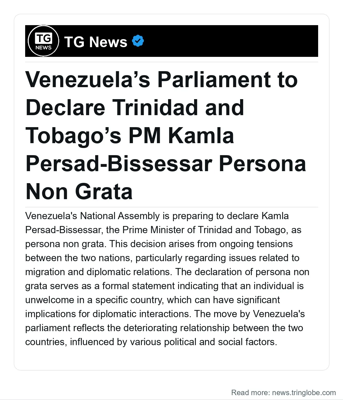 As the situation continues to evolve, both governments may seek to address the underlying issues that have contributed to this declaration. However, the path forward remains unclear, and the declaration of persona non grata represents a significant diplomatic action that highlights the challenges facing Trinidad and Tobago and Venezuela in their bilateral relations.