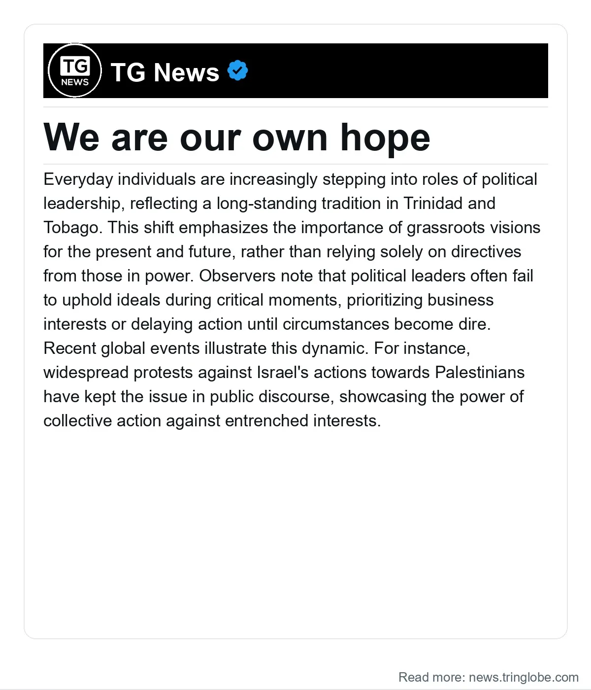 Everyday individuals are increasingly stepping into roles of political leadership, reflecting a long-standing tradition in Trinidad and Tobago. This shift emphasizes the importance of grassroots visions for the present and future, rather than relying solely on directives from those in power. Observers note that political leaders often fail to uphold ideals during critical moments, prioritizing business interests or delaying action until circumstances become dire.