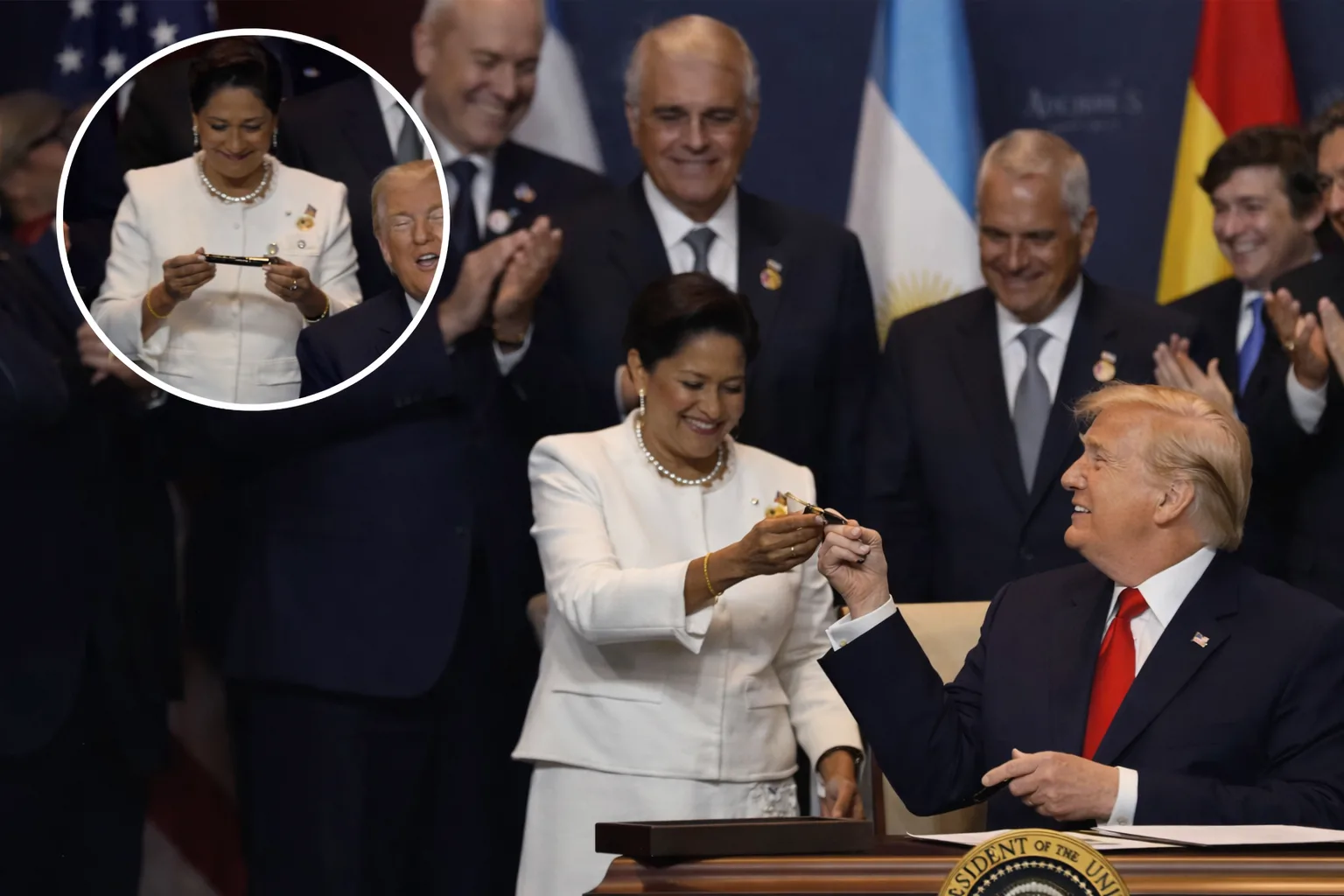 In a significant diplomatic gesture at the Shield of the Americas Summit, U.S. President Donald Trump handed over the pen he had just used to sign an official document to Trinidad and Tobago Prime Minister Kamla Persad-Bissessar. The exchange, which took place in front of other leaders and officials, was met with smiles and applause, quickly becoming a highlight of the summit. In American presidential tradition, pens used in official ceremonies are often given to dignitaries as souvenirs symbolizing the historic event. This move acknowledged Persad-Bissessar’s presence at the moment of the document’s finalization. The summit convened leaders from the Western Hemisphere to discuss regional security, economic cooperation, and strategies against organized crime and narcotics trafficking.