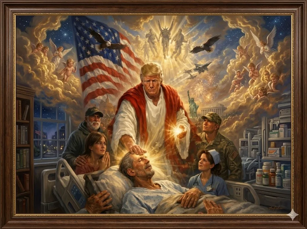 A social media post featuring U.S. President Donald Trump in a Christ-like scene has been taken down following intense backlash online. The image, shared on Sunday night, depicted Trump in a robe surrounded by glowing religious imagery as he placed a hand on a bedridden man, which quickly attracted attention and criticism across multiple platforms.